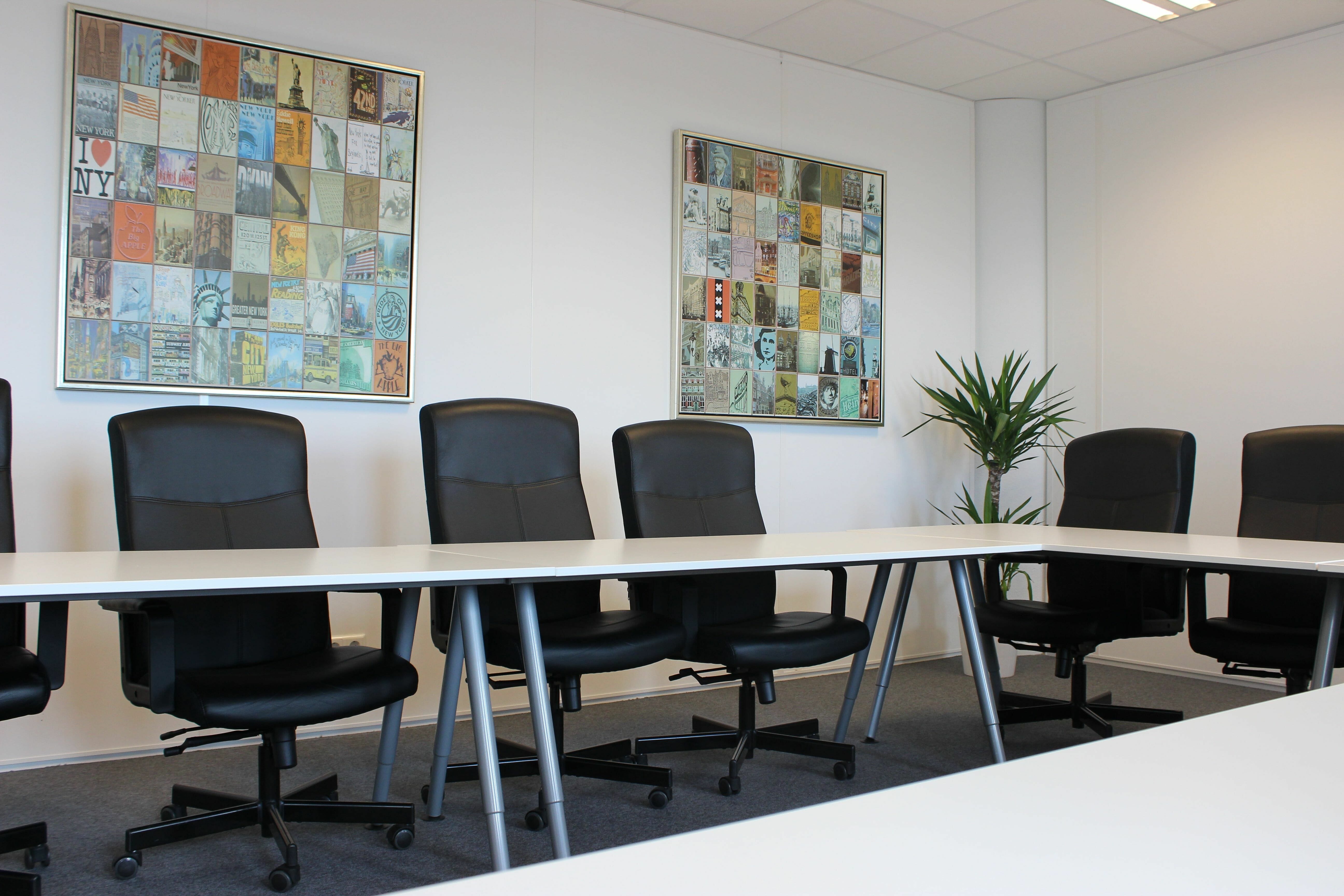 Onze vergaderzalen bevinden zich op de 15e verdieping van het gebouw, en bieden vanuit de stoelen een prachtig uitzicht over het centrum van Amsterdam. Daarbij kunnen de tafels en stoelen worden ingedeeld in verschillende opstellingen naar wens. Hoe u dit in wilt delen is hierbij natuurlijk aan u.